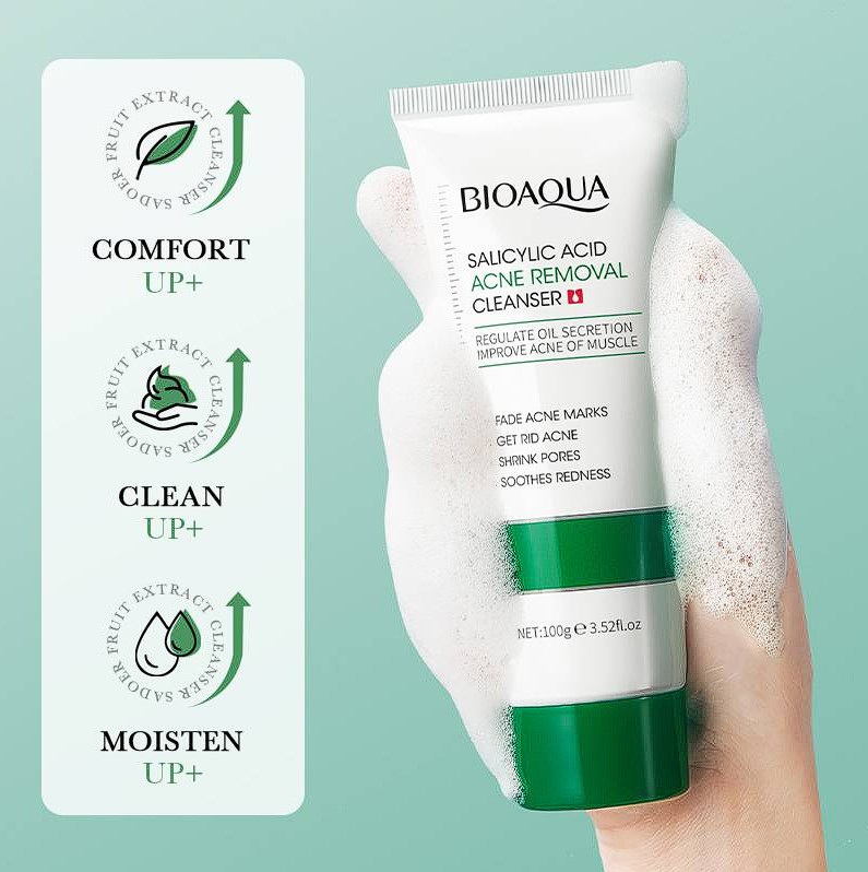 BIOAQUA Salicylic Acid Acne Removal Cleanser is a powerful skincare solution designed to target and combat acne. This effective cleanser utilizes salicylic acid to regulate oil secretion, reducing excess oil production that can contribute to acne breakouts. It also helps to fade acne marks, shrink pores, and soothe redness, leaving your skin looking clear and healthy. The mild and gentle formula is suitable for all skin types, including sensitive skin. Experience the transformative power of BIOAQUA Salicylic Acid Acne Removal Cleanser and achieve a clearer, more confident complexion.